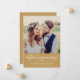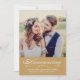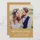 Anuncie o seu casamento à família e amigos e convide-os a comemorar com uma recepção de cerimônia poste. Este design cartão com fotos apresenta uma foto da noiva e do noivo com o Announching em um roteiro elegante e seu nome de casado e detalhes de casamento. A parte de trás do cartão convida a uma celebração de recepção de casamento. As informações de RSVP estão incluídas. A cor e o texto cognac/tan podem ser personalizados para atender às suas necessidades específicas.