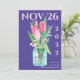 Foto Floral Púrpura e Esbranquiçada Guarde a Data - Cartão de Anúncio de Casamento Vertical. Casamento Floral Roxo Moderno Salve a data com a foto de volta - Tulip Jar Design Compartilhe sua história de amor em estilo com este romântico vertical Salve a data com uma ousada data rosa-pincelada, delicadas flores de tulipas em um jarro de pedras e uma foto personalizada no verso. Projetado em roxo rico com fundo de textura macia, este cartão combina elegância moderna com um toque de encanto floral. Perfeito para casamentos de primavera, jardim ou de temas roxos, este design é totalmente personalizável com a data de casamento, os nomes e a fotografia do noivado. Para mais personalizações, contacte-me em mypaperlove2021@gmail.com