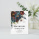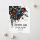 Um casamento de marinho arrojado Salve o convite de data apresentando um buquê floral de marinho de água, moderno e elegante, com sua sombra suavemente derramando sobre o convite e espumantes salpicos de ouro e elementos, com seus primeiros nomes em uma fonte moderna com uma data numérica de casamento por baixo e uma pequena fonte para os detalhes. Este marinho de luxo Burgundy Salve O convite de Data é adequado para qualquer ocasião.