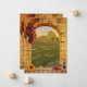 Um romântico clássico Salve o cartão de data no estilo vintage com um tema de vinhedo ou vinho. Esta pintura apresenta uma paisagem de fantasia italiana enquadrada por um arco romano, uvas, vinho e girassol. O texto frontal é uma imagem estilizada e pode ser excluído se você preferir texto personalizado.