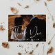 Expresse a sua gratidão e obrigado aos seus convidados pela sua presença e pelos seus belos presentes com este cartão com fotos personalizável com uma tipografia moderna. Basta adicionar sua foto favorita de casamento, mudar as cores e escrever sua própria obrigado.