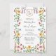 Um convite para casamento lindo de Watercolor com fontes elegantes cercadas por flores coloridas e verde comum no jardim de cabana inglês. Perfeito para o quintal de verão Primavera ou casamento de jardim.