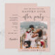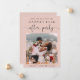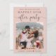 Elegante anúncio cor-de-rosa para salvar a data do casamento para o pós-casamento ou recepção de casamento pequeno. A frente apresenta sua foto de casamento e "Guarde a Data para Nossa Festa Feliz para Sempre" em uma mistura de tipografia simples e um belo script com floreios. Adicione seus primeiros nomes e data de recepção. No verso, você pode personalizar seu anúncio de casamento com mais detalhes e adicionar detalhes da festa ou recepção e seus nomes em um script semelhante a uma assinatura.