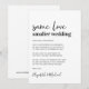 Anúncio de casamento menor modernizado e minimalista. "Mesmo Amor, Casamento Menor" está escrito em uma mistura de uma fonte contemporânea e tipografia ousada e moderna. Personalize sua mensagem, adicione seus nomes em uma fonte com estilo de assinatura e adicione o site do seu casamento no verso para que amigos e familiares encontrem mais informações, como links de transmissão ao vivo da cerimônia.