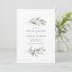2 ramos de oliveira bonitos enquadram seus detalhes pessoais de casamento neste design de eterno de anúncio de . As folhas de aquarelas em tons verdes mudos estão perfeitamente equilibradas no fundo branco, dando um aspecto sofisticado. A adição de um padrão de coordenação no sentido inverso aumenta a sensação de elegância e qualidade. Parte de uma coleção de tendas de casamento.