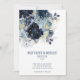 Um marinho moderno e elegante, poeirento buquê floral azul-aquoso com sua sombra suavemente derramando no convite e espumantes pedaços e elementos de ouro, com seus primeiros nomes em uma fonte moderna com uma data numérica de casamento embaixo e uma pequena fonte para os detalhes. Este marinho de luxo, empoeirado, é adequado para qualquer ocasião.