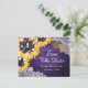 Casamento de girassol roxo personalizado, exceto cartões de data com girassóis e eucalipto contra um fundo de madeira rústica adornados com corações de burlap, rendas florais brancas e luzes de cordas. Nosso casamento rústico roxo, exceto o cartão de data é perfeito para um país rústico, quintal ou festa de casamento de celeiro inspirado pelas flores de girassol.