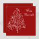 Anuncie seu casamento privado ou elopeio de dezembro com o festivo Casamento de inverno da Árvore de Natal Vermelha / Anúncio de Elopement. Este elegante elopemento de inverno personalizado ou anúncio de casamento apresenta um intrincado design de árvore de Natal branca sobre um fundo vermelho.