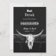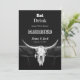 Anúncio de casamento country ocidental em preto e branco. Caveira de touro e vaca rústica. Use um pouco de humor com esses convites engraçados em estilo de casa de fazenda. Coma, Beba, porque estamos nos casando pode ser personalizado. Estilo de design antigo e vintage do velho oeste. Animal de fazenda moderno e elegante. Personalize a escrita branca. Direitos autorais da imagem Marg Seregelyi Photography.