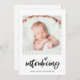 Este anúncio de nascimento de recém-nascidos, preto e branco, simples e na moda, apresenta uma tipografia moderna, casual e um coração ilustrado desenhado à mão. Adicione a foto do seu bebê à frente e uma mensagem e todas as suas estatísticas de nascimento à parte de trás. Um olhar elegante e atualizado minimalista que é único e contemporâneo e também neutro em termos de gênero, para um menino ou uma menina.