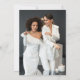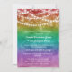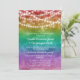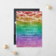 Convite de recepção de casamento LGBT com fundo degradê de arco-íris e luzes de corda personalizadas com uma foto do casamento no verso. Convite de celebração pós-elopamento com tema Pride e fundo colorido com luzes de fada. Convite encantador para celebração de casamento lésbico com tema de arco-íris.