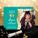 Comemore seu mais velho de graduação favorito com esse design de fotos "Formando" de tom de ouro e lacre. O modelo apresenta uma visão ondulada do lado esquerdo com a palavra "Formando" no fundo ondulado dourado, acompanhada por um boné de formatura dourado à esquerda e ao ano de aula do formando, nome e escola de branco. Ilustração original e design por Designs Holiday Hearts (direitos reservados) com o crédito de foto marcador para Logan Isbell via Unsplash.