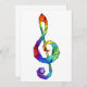 Poligonal, arco-íris, chave musical brilhante sobre fundo branco. Tatuagem de polígono. Limpo de árvores