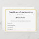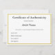 Esta é uma placa de Certificado de Autenticidade personalizável para que os artistas incluam com obras de arte originais, como pinturas, desenhos, esculturas etc. Adicione o seu nome à placa e selecione o papel correspondente para escrever facilmente com uma caneta ou marcador. Eu sou um pintor e uso um estilo de arquivo semelhante para meus próprios Certificados de Autenticidade, e pensei que isso poderia ser útil para outros artistas também. Obrigados para procurar!