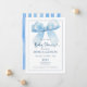 Este charmoso convite para chás de fraldas mostra um arco azul de cor d'água na frente e listras azuis de cor d'água no verso. Você pode personalizá-lo com suas informações para criar um convite exclusivo. Basta clicar no botão editar/personalizar para personalizar este design. Este convite encantador faz parte de um conjunto completo de chás de fraldas.