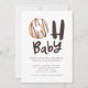Espelhado com convite para chás de fraldas de rosquinha amorosa. Ilustrações de aquarela e texto com letra manual. Parte de uma coleção.