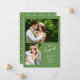 Este anúncio de na moda chic "nós fugimos" tem um lugar para duas de suas fotos, mais tipografia caprichosa. Adicione sua mensagem pessoal e nomes à frente. O convite apresenta uma cor verde-musgo de tendência, com bolinhas brancas adicionadas ao verso.