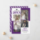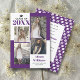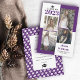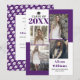 Classe Moderna de 2025, quatro fotos, anúncio de graduação roxa. Inclui quatro fotos do formando em blocos coloridos de roxo e branco.