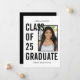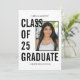 Sua foto do formando, rodeada de letras grandes em negrito "CLASSE DE 25 FORMANDOS", terminou com seu nome e segundo grau. No verso, você pode compartilhar uma história ou a biografia de interesses e atividades do formando, ou apagar o texto e deixar o vazio. Adicione sua própria foto e outros detalhes seguindo o link "Personalizar". As cores também podem ser alteradas para corresponder às cores da escola do seu formando, usando o menu editar. Se quiser assistência, por favor, sinta-se à vontade para me contactar através do correio eletrônico em susanmingaydesigns@gmail.com