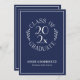 Enviar anúncios clássicos de graduação apresentando um branco chic no emblema da tipografia azul marinho que diz: CLASSE DE [ANO] FORMANDO com as palavras curvando ao redor do ano no meio com folhas botânicas curvas ao longo de cada lado do design circular. Abaixo do emblema está o nome do formando e a escola em uma fonte de serifa branca elegante. Um retângulo branco fino cria uma borda perto da borda. Personalize o ano, o nome e a escola na barra lateral. Personalize-o para qualquer tipo de formando: segundo grau, faculdade, escola de formandos, faculdade de direito, escola de medicina ou escola de comércio. A parte traseira é marinho com uma borda retangular branca fina perto da borda. Para ver o design em outros itens, clique no link de coleta "Artes Rocklawn". Copyright ©Claire E. Skinner. Todos os direitos reservados.