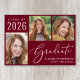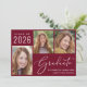 Anúncio de graduação vermelho burgundy 2025 Classe Simples, com 3 fotos de colagem e "Formando" em um roteiro elegante e branco. Adicione o nome do formando, ano de aula e escola na tipografia branca moderna.