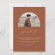 Classe de 2023! Anuncie a sua formatura à família e amigos com este cartão de anúncio personalizável de graduação de fotos. Apresenta uma fotografia de arco e uma caligrafia moderna. Personalize este anúncio de formatura de terracota adicionando uma foto, um nome, uma escola e outros detalhes. Este anúncio de formatura boho está disponível em outros estoques de cartolina.