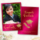 Crie um único anúncio personalizado de graduação, cor-de-rosa quente e ouro, com sua foto de formando para a classe de 2025. Esta design é decorada com um boné formando e ilustrações de diploma em cores amarelas ouros. O modelo facilita a personalização do anúncio de formando com nome, ano, nome escolar, foto e outro texto.