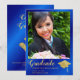 Crie um anúncio elegante de graduação personalizada, azul real e ouro, com sua foto de formando para a classe de 2025. Esta design é decorada com um boné formando e ilustrações de diploma em cores amarelas ouros. O modelo facilita a personalização do anúncio de formando com nome, ano, nome escolar, foto e outro texto.