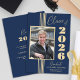 Este lançamento do formandos Classe 2025 apresenta faixas douradas, quadro fotográfico e texto em fundo azul marinho.