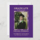 Formando Elegante / cartão com fotos de graduação. Fácil de adicionar foto/imagem. Anúncio de Graduação ou Obrigado. Fragmentação de ouro com pincelada sobre fundo roxo escuro. Dê-os durante ou envie-os depois da formatura (família, professores, amigos). Faz o excelente ficar calmo, a memória de um amado. Adicione sua mensagem (pais). Escolha de várias cores.