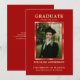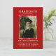 Formando Elegante / cartão com fotos de graduação. Fácil de adicionar foto/imagem. Anúncio de Graduação ou Obrigado. Fragmentação de ouro com traço de pincel sobre fundo vermelho escuro. Dê-os durante ou envie-os depois da formatura (família, professores, amigos). Faz o excelente ficar calmo, a memória de um amado. Adicione sua mensagem (pais). Escolha de várias cores.