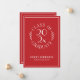 Enviar anúncios de graduação modernos com um branco chic no emblema da tipografia vermelha que diz: CLASSE DE [ANO] FORMANDO com as palavras curvando ao longo do ano no meio com folhas botânicas curvas ao longo de cada lado da design circular. Abaixo do emblema está o nome do formando e a escola em uma fonte de serifa branca elegante. Um retângulo branco fino cria uma borda perto da borda. Personalize o ano, o nome e a escola na barra lateral. Personalize-o para qualquer tipo de formando: segundo grau, faculdade, escola de formandos, faculdade de direito, escola de medicina ou escola de comércio. A parte traseira é vermelha com uma borda retangular branca fina perto da borda. Para ver o design em outros itens, clique no link de coleta "Artes Rocklawn". Copyright ©Claire E. Skinner. Todos os direitos reservados.