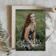 Anuncie sua formatura com este anúncio personalizável de graduação de fotos. Ele apresenta uma escrita elegante e tipografia clássica. Personalize adicionando suas fotos. Este anúncio de graduação de fotos está disponível em outras cores e estoque de papelão.