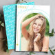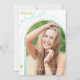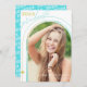 Anuncie a conquista do seu formando com este anúncio de graduação apresentando uma fotografia-arca destacando seu formando com texto de sobreposição branco. A parte de trás apresenta um simples padrão de repetição do seu ano de graduação em branco sobre um fundo azul brilhante e divertido.