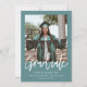 Um cartão postal de anúncio de formando de script simples e moderno para o seu segundo grau ou formandos. Adicione sua própria foto de na moda. Foto com formando de script e sobreposição de tipografia branca na foto. Padrão Boho no verso do convite.