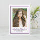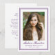 Honor your graduate’s milestone with this elegant purple photo graduation announcement, designed with a refined double border frame that adds a distinctive and sophisticated touch. The graduate’s portrait is centered within the clean, structured layout, drawing attention to their photo while maintaining a polished and timeless presentation. Their name is displayed below in graceful script, with their school and graduation year shown beneath in classic serif lettering for a formal academic finish. The back includes space for a personalized announcement message, allowing you to share their accomplishment and celebrate this meaningful achievement with family and friends. Ideal for high school and college graduates, this purple graduation announcement offers a memorable and stylish way to mark this special occasion.