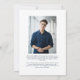 Comemore seu formando com este anúncio clássico e simples de graduação de fotos. A frente desta placa de formando com duas fotos tem uma imagem vertical com uma tipografia simples e é perfeita para mostrar fotos de mais velho. O tipo inclui muito espaço para nome, escola e ano, A parte traseira da placa tem uma segunda foto e espaço para o tipo que pode incluir realizações, planos futuros ou detalhes de festa de formatura. Mais cores e estilos disponíveis na coleção de graduações de Lea Delaveris Design.
