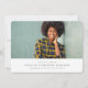 Comemore seu formando com este anúncio clássico e simples de graduação em uma foto. O tipo abaixo da foto horizontal inclui bastante espaço para o nome do formando, faculdade ou segundo grau e ano de caçador verde, que corresponde à parte traseira da carta. A cor preta pode ser ajustada a qualquer cor escolar clicando em "Personalizar mais".