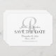 Simples, clássico, anúncio de Save the Date sem foto, monogramado em cinza, preto e branco. Elke Clarke© Outros estilos e cores disponíveis em www.zazzle.com/monogramgallery