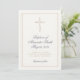 Celebre um marco sagrado com este elegante convite de batismo. Com um nobre brasão com um cordeiro gentil e uma cruz proeminente, este design evoca um sentimento de fé e pureza. A inscrição 'Com Amor e Graça' adiciona um toque de serenidade, enquanto a escrita ornamentada detalha as informações essenciais para o batismo de Alexander Smith. Este convite é perfeito para marcar o dia especial de uma criança com um estilo atemporal e sofisticado, garantindo que seus convidados recebam um lembrete que reflete a importância da ocasião. O fundo creme suave e os acentos clássicos em azul-marinho e dourado criam uma estética refinada adequada para qualquer cerimônia religiosa.