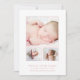 Cartão clássico de nascimento de uma menina apresentando um design minimalista com uma colagem de fotos com três de suas fotos favoritas. Abaixo está o nome do bebê, estatísticas de natalidade e os nomes dos pais. O dorso tem um simples padrão de listras rosa e branca. Esta design elegante é uma forma excelente de anunciar a chegada da sua menina.