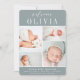 Os anúncios de nascimento elegantes apresentam quatro fotos recém-nascidas dispostas em um layout de colagem em grade, em um fundo verde empoeirado. "Welcome [name]" (Bem-vindo [name]) aparece no topo no script de caligrafia e no texto clássico do bloco. Personalize com o nome do cheio do bebê, estatísticas de natalidade e uma assinatura familiar no fundo. Uma design simples e limpa, neutra em termos de gênero, para anunciar a sua chegada.