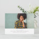 Comemore seu formando com este anúncio clássico e simples de graduação em uma foto. O tipo abaixo da foto horizontal inclui bastante espaço para o nome do formando, faculdade ou segundo grau e ano em preto-chico. A parte traseira da placa é uma cinza macia com um padrão de grade, mas a cor de fundo pode ser ajustada a qualquer cor da escola clicando em "personalizar mais".