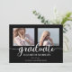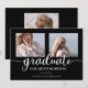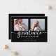 Classy and elegant three photo script text "graduate" graduation announcement design by Holiday Hearts Designs (rights reserved). Placeholder template photos courtesy Unsplash.