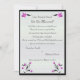Este Anúncio de Elopemento floral apresenta flores clematis com folhas pretas sobre um fundo cor-de-rosa. Simbolicamente, a clematis está associada à engenhosidade, finura e elegância distinta. *o poema de elopemento está protegido por direitos autorais e não pode ser reproduzido ou usado para outros fins.