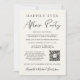 Convite de casamento ou anúncio de casamento privado e convite de recepção ou festa de celebração de casamento com creme luminoso e elegante. A frente apresenta "Festa Feliz para Sempre" em uma mistura de tipografia simples e um script moderno, seu anúncio de casamento personalizado e convite de recepção, um código QR para que os convidados o leiam para obter mais informações e responder online, e seus nomes em um script semelhante a uma assinatura. Insira o URL do site do seu casamento para criar automaticamente o código QR e adicione suas iniciais no topo (o modelo de iniciais é dimensionado adequadamente para manter o código QR legível; você deve verificar lendo sua personalização com o seu telefone antes de fazer o pedido). O verso apresenta sua foto de casamento favorita, seus primeiros nomes e data de casamento.