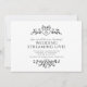 Monograma de folha desenhada à mão em preto e branco com cartão de anúncio de transmissão ao vivo de casamento com coração e código QR. Este cartão simples, porém elegante, faz parte do conjunto de casamento com monograma de folha desenhada à mão em preto e branco correspondente. Ideal para ser usado como cartão de informações de casamento para informar aos convidados sobre um evento de transmissão de casamento devido a estar em um casamento remoto ou de destino ou por circunstâncias imprevistas. Desenho de folhas circulando suas iniciais de monograma e palavras. Outras opções de cores e produtos correspondentes estão disponíveis. Desenho e design original por www.mylittleedenweddings.com