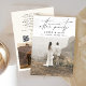 A Elegância se desdobra com o nosso Convidado de Casamento Feliz de "Festa Depois" Celebre o início de sua eternidade em estilo e convide seus entes queridos a continuarem as festividades com os nossos convites de casamento "Feliz de Todos Após a Festa". Projetado para ecoar a alegria e sofisticação de seu dia especial, este convite é uma combinação perfeita de elegância e celebração. Design da frente: Enquanto os convidados fazem o convite, eles são recebidos por uma incrível foto vertical de cheio captando um momento franco e alegre do seu casamento — seus sorrisos, o cenário, o ambiente — todos insinuando a revelação a ser feita. Sobreposta a esta fotografia, a frase "feliz para sempre 'depois da festa'" é penalizada num belo roteiro escrito à mão, incorporando a transição perfeita dos vossos votos ao entretenimento da noite. Abaixo, os nomes do casal e a data do seu sindicato são bem apresentados, servindo de recordação precioso do seu dia. Design de trás: Sacudir a carta para descobrir um anúncio de casamento, elegantemente enquadrado e levando ao caloroso convite para o seu casamento após a festa de recepção. Uma foto horizontal de casamento — cuidadosamente selecionada por você — serve como pano de fundo pessoal para os detalhes da sua família, criando uma conexão íntima com cada destinatário. Todas as palavras estão saborosamente dispostas a convidar os vossos convidados para o coração da vossa celebração, assegurando-lhes que sabem quão importante é a sua presença para a continuação da vossa história de amor. Inclua seu site de casamento e código QR para atrair seus convidados para ver mais fotos de seus núpcias, e dê seus rsvps no seu site de casamento. Recursos do produto: Papel de alta qualidade: Papel grosso e premium que se sente tão luxuoso quanto parece, disponível em vários acabamentos para se adequar ao seu gosto pessoal. Fotos personalizáveis: escolha as suas fotos de dia de casamento mais apreciadas para um toque verdadeiramente personalizado. Elegante Script: O estilo manuscrito adiciona um toque de capricho e romance ao sofisticado design. Informações detalhadas: Todos os detalhes pertinentes são apresentados em um formato claro e elegante, garantindo que seus convidados tenham todas as informações necessárias. Tamanho e Forma: Uma orientação paisagística moderna oferece uma apresentação dinâmica e envolvente. Com os nossos convites "Feliz Festa Nunca Depois", a magia do seu dia de casamento estende-se à noite e além. Envie esta última chamada para a diversão, um belo lembrete de que enquanto a cerimônia pode acabar, a celebração do seu sindicato está apenas começando. [Encomenda agora] e deixe as memórias continuarem em estilo! Entre em contato com o designer para produtos correspondentes. Copyright Anastasia Surridge, todos os direitos reservados.