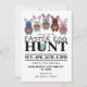 Este convite é perfeito para qualquer um que planeja uma caçada divertida de ovos na Páscoa neste feriado de Páscoa. Apresentando uma variedade de coelhos coloridos da Páscoa e decorados com ovos vibrantes da Páscoa na parte de trás do convite, este convite certamente impressionará seus convidados.