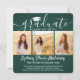 Compartilhe a alegria de uma formatura do ensino médio ou faculdade com esses anúncios personalizados quadrados verdes e brancos de colagem de 4 fotos. Todas as imagens e textos são fáceis de personalizar. (DICA DE COLOCAÇÃO DE IMAGEM: Uma maneira fácil de centralizar uma foto exatamente como você deseja é cortá-la antes de fazer o upload para o site da Zazzle.) Este modelo pode ser personalizado com qualquer detalhe de sua escolha, como informações de convite para festa, nomes dos pais, honrarias especiais, título do diploma, citação inspiradora favorita, informações de contato do graduado, planos de educação futura ou nova posição de trabalho. O design apresenta um fundo ombre verde escuro, um boné de diploma branco, caligrafia de estilo manuscrito, tipografia minimalista moderna e quatro fotos de sua escolha, como fotos de formatura ou imagens da cerimônia de formatura. Esses cartões de anúncio de formatura elegantes são uma maneira moderna e sofisticada de compartilhar a celebração do seu dia especial com